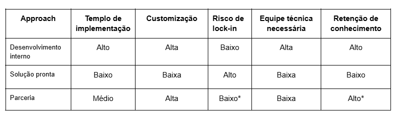 Depois de definir a solução, é hora de escolher como implementá-la. Existem três caminhos possíveis: